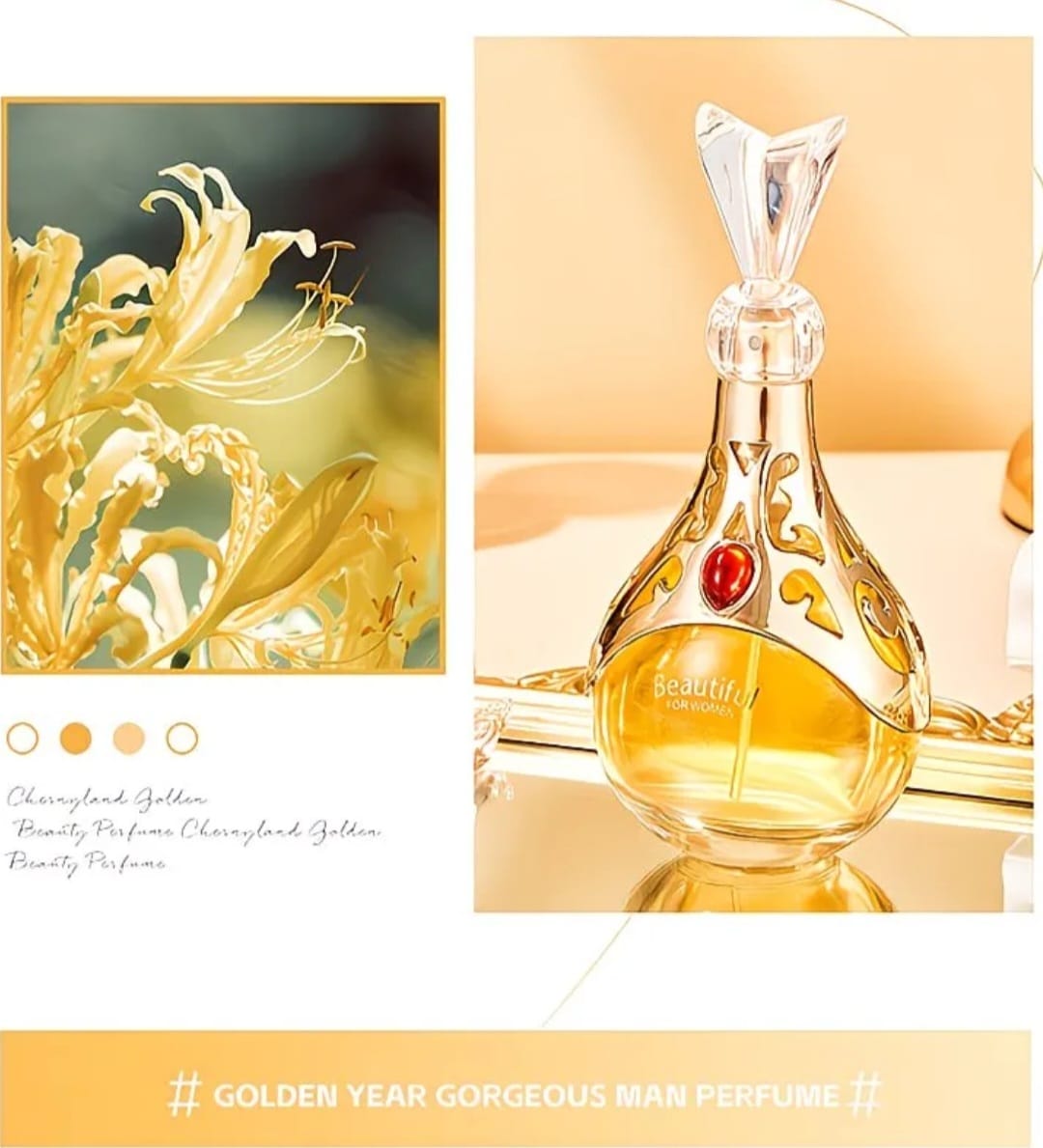Golden Elegance is a luxury long-lasting perfume for women designed to capture elegance, confidence, and femininity. This beautiful Eau de Parfum fragrance blends delicate floral notes with a warm, sensual finish, creating a scent that lasts all day.