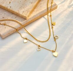 Pair it with a V-neck or off-shoulder top to let the layers and heart pendant shine beautifully.
