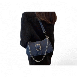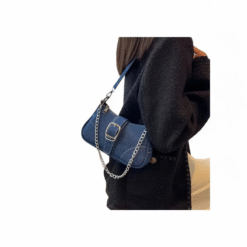 Elevate your everyday style with this chic blend of modern and timeless denim. Designed for the fashion forward woman, this bag features a rich deep blue denim finish, accented with a bold silver chain that instantly adds attitude and elegance to any outfit. Wear it as a shoulder bag or style it crossbody for hands free ease.
