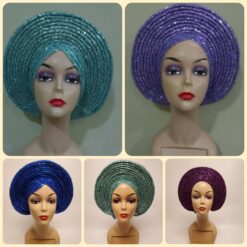 Sparkle and shine with our Dazzling Sequin Autogele, covered in shimmering sequins. this headwrap is a true showstopper. Perfect for glamorous evenings, weddings, and red-carpet events, it adds that extra dazzle to your look.