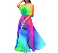 Off Shoulder Rainbow Maxi-dress