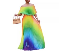 Be the first to review “Off Shoulder Rainbow Maxi-dress”