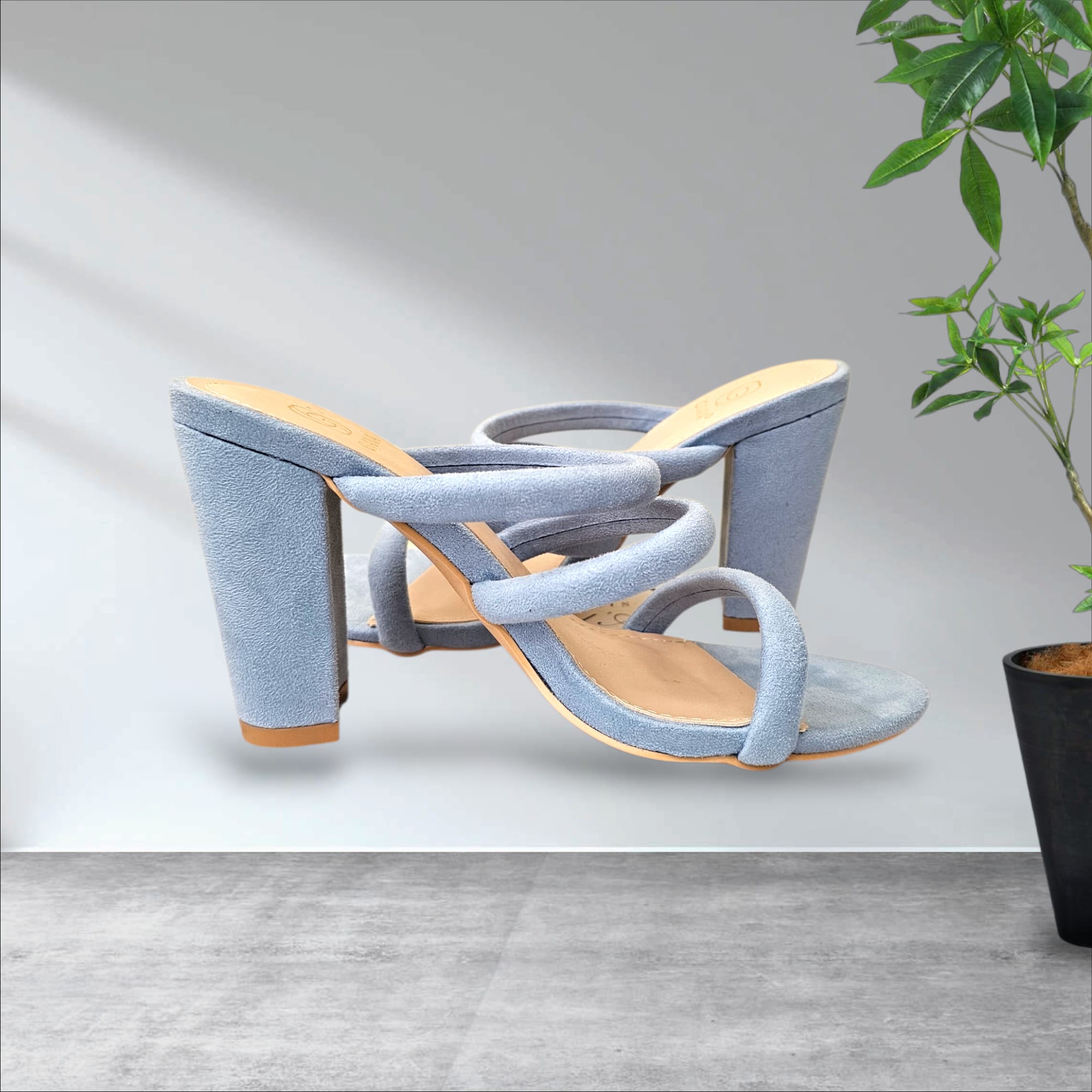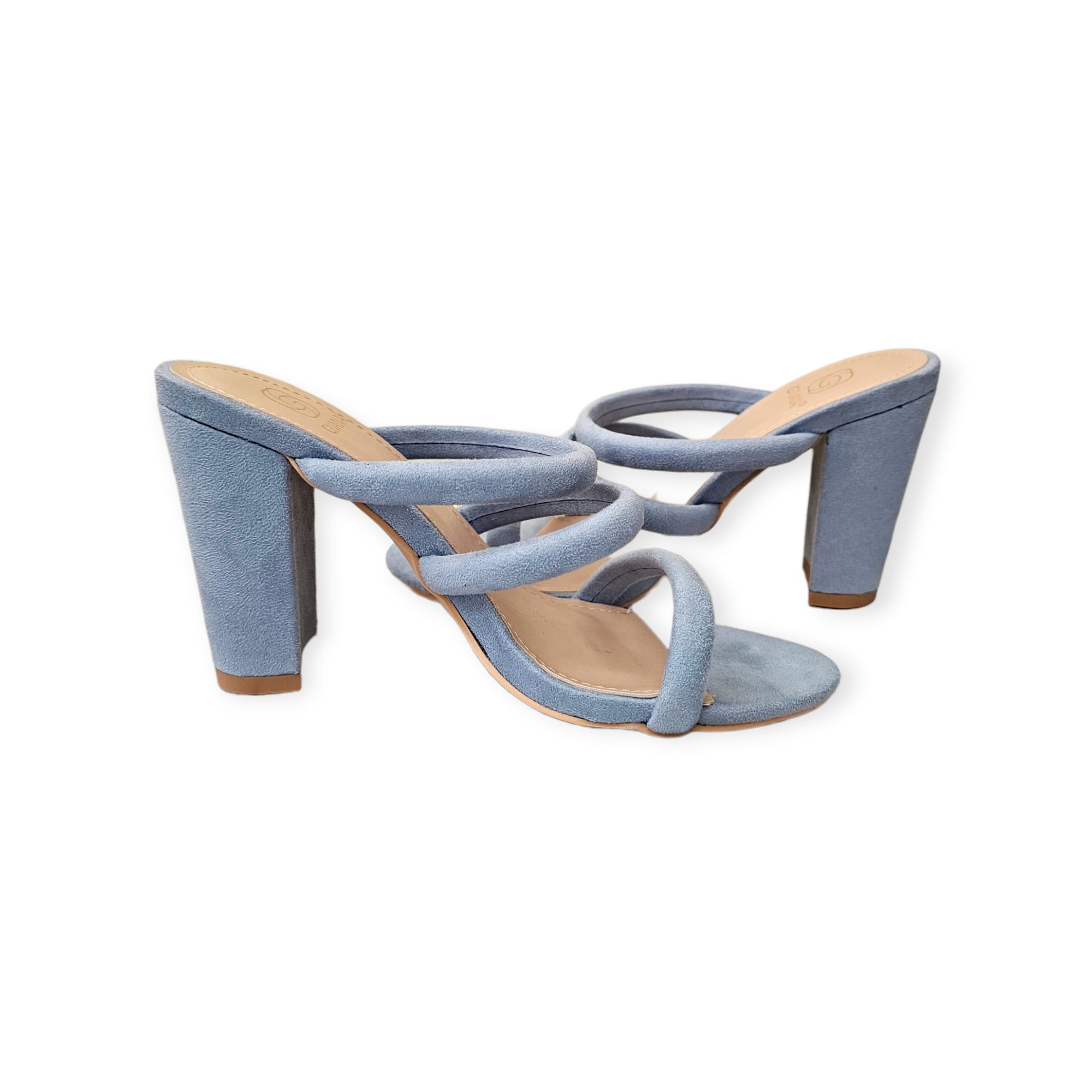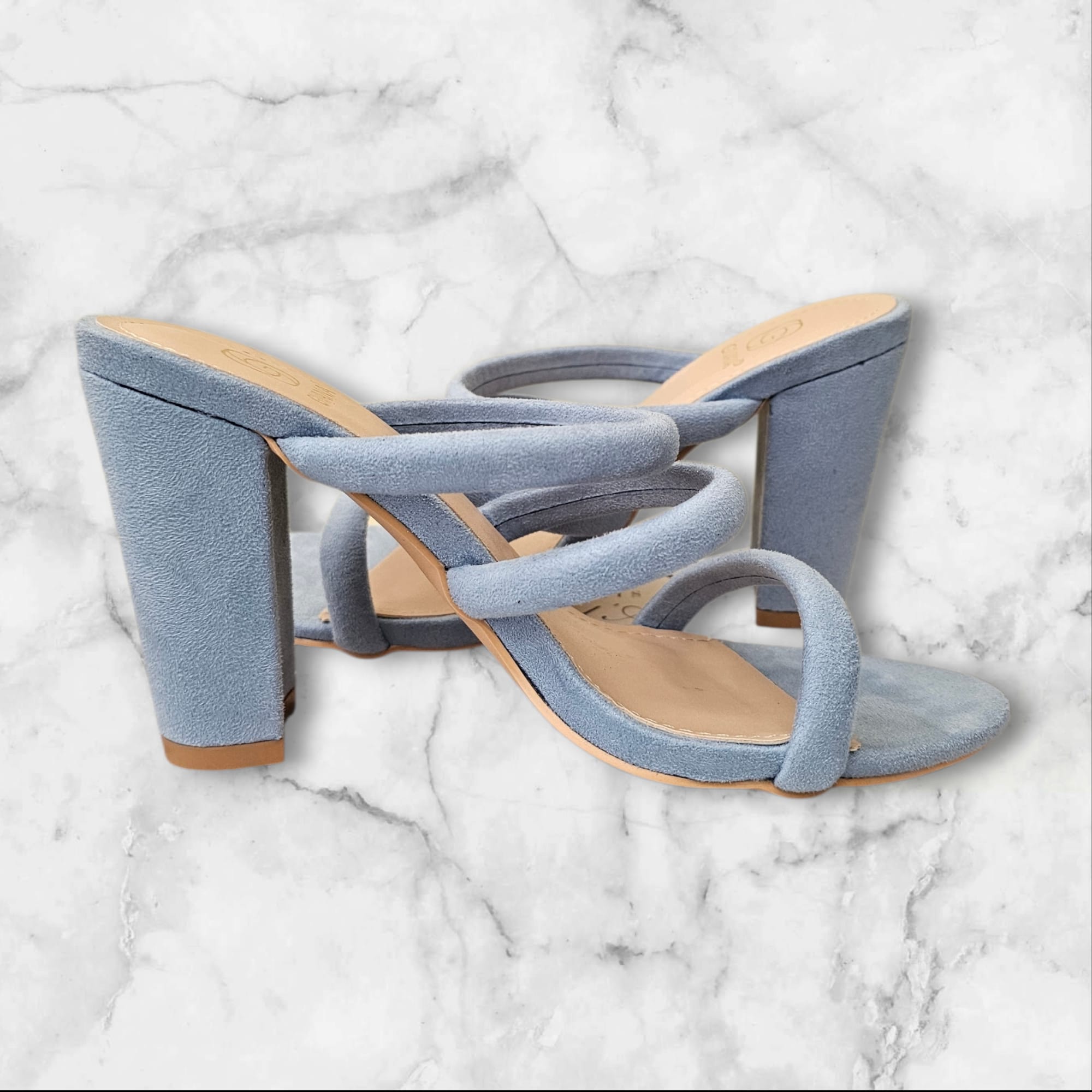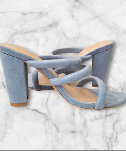 This is a timeless mule designed for comfort, confidence and refined style. Crafted in a soft sky blue suede finish, this heel features delicately padded crossover straps that hug the foot beautifully while offering a secure and flattering fit. The sturdy block heel provides the perfect balance of height and comfort, allowing you to stay stylish all day and night without compromising ease.
