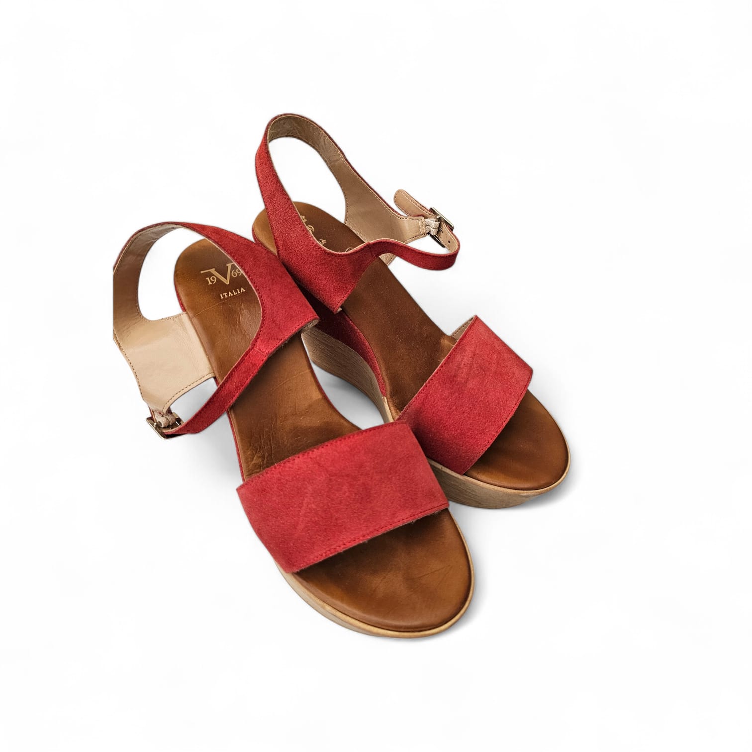Be the first to review “Versace Rosso Suede Wedge Sandals”